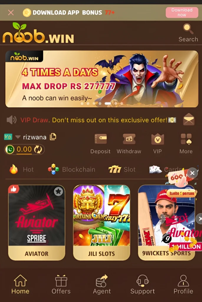 Noob Win Game is a lightweight mobile gaming app designed especially for users in Pakistan who love simple, stress-free entertainment with a chance to earn along the way. With its easy interface and relaxing gameplay, the app feels like a digital arcade in your pocket — offering mini-games, coin collection, and reward opportunities all in one place. What makes it stand out is how it combines casual play with real-world value, making it a favorite for users looking to unwind while picking up small prizes and bonuses on the side.